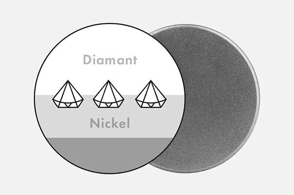 Industrial diamonds are considered one of the most durable and efficient abrasives available. The monocrystalline diamonds we use are harder than any knife steel. In an electroplating process around 55 % of the diamonds in the HORL Diamond Standard are firmly embedded on a nickel plate. Their surface, which is rough to begin, is refined during the first grinding procedure and it retains this condition from then on.