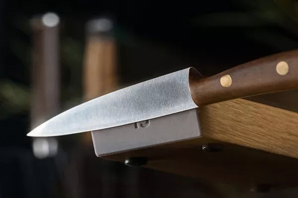 The 20° grinding angle provides new sharpness and a robust cutting edge in a short time. This means the knife retains its sharpness for a long time and is suitable for a wide variety of everyday uses in the kitchen. It also gives many outdoor pocket knives a sturdy edge and excellent sharpness for everyday use.