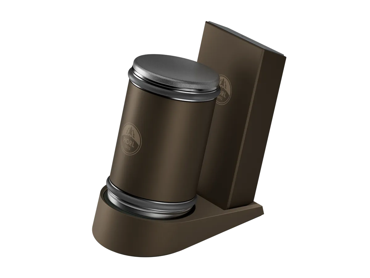 Con su acabado metálico y sus líneas limpias, el HORL® Dock encaja con elegancia en cualquier cocina. En grafito, contrasta elegantemente con la madera de roble y nogal de los afiladores HORL®, mientras que el HORL® Dock en bronce oscuro combina exactamente con el color del HORL®2 Pro.